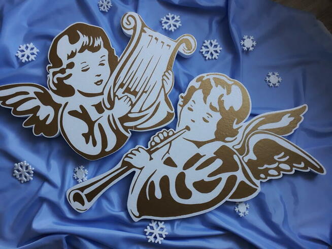 Przedmiotem sprzedaży są dwa aniołki z sercami jako element dekoracji pierwszokomunijnej. Aniołki wycięte są ze ...